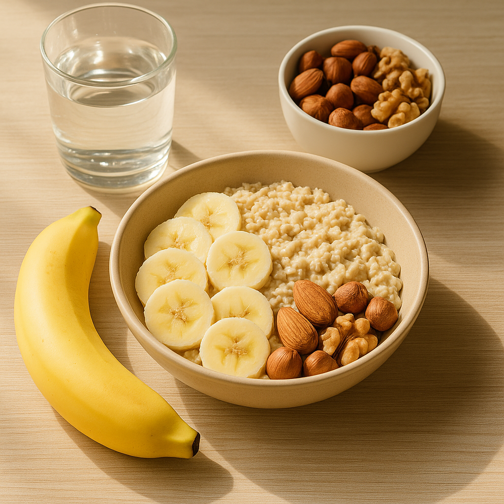 아침 공복에는 따뜻한 물, 오트밀, 견과류처럼 부드럽고 영양가 있는 음식을 선택하는 것이 좋습니다.